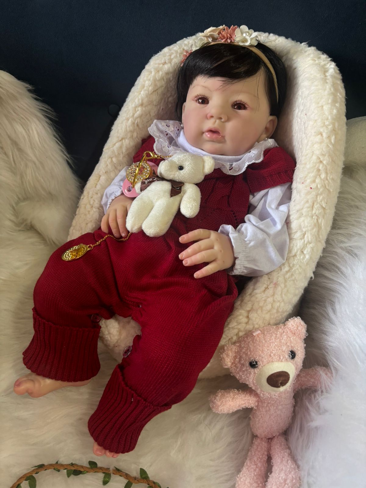 Material: Feito em vinil macio e paninho deixando ela muito molinha igual bebê de verdade.